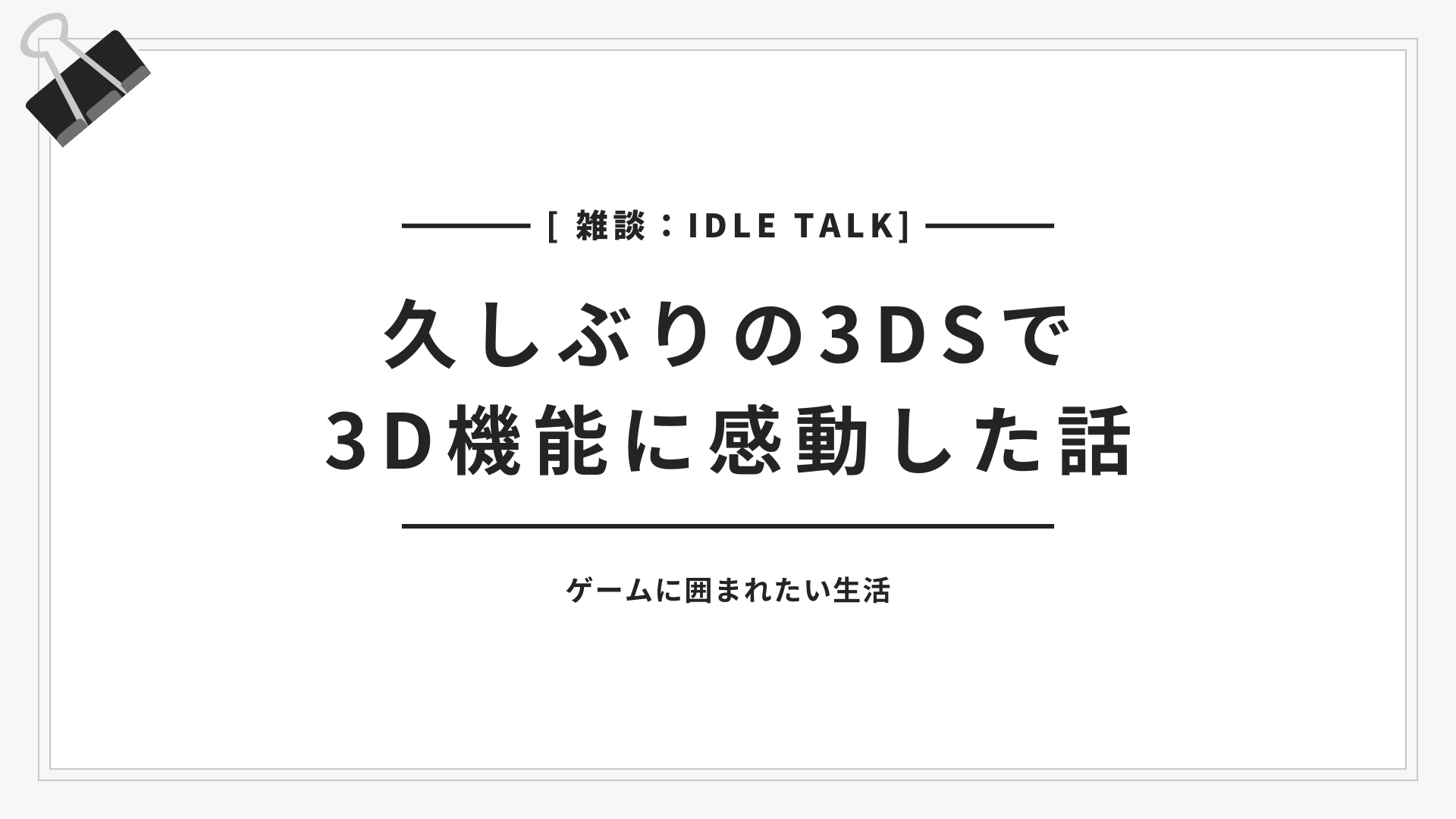そのレベルで止まっていた当時に”裸眼”で”手の中”に立体視体験ができるゲーム機が来たわけで、(現在に至るまで見ても)これだけの体験ができるゲームを比較的安価で提供できていたことが月並みですがすごいなぁと思ってしまうわけです。