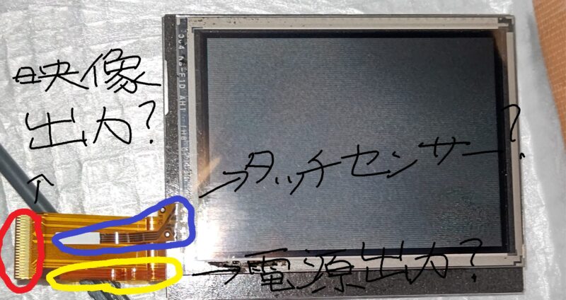 ・大きいケーブルが映像(ゲーム画面)出力の信号線、細いケーブルの一本(上)がタッチセンサー、細いケーブルの一本(下)が電源供給?といった感じではないかという推測。