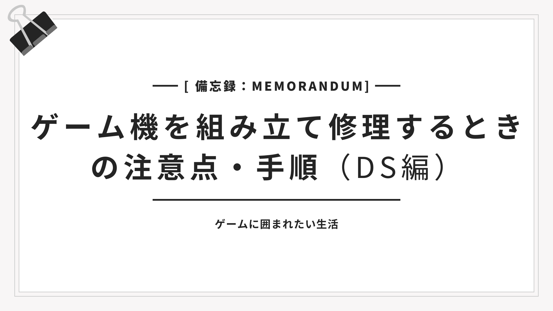 【備忘録】ゲーム機を組み立て・修理するときの注意点・手順【ニンテンドーDS】(後編)