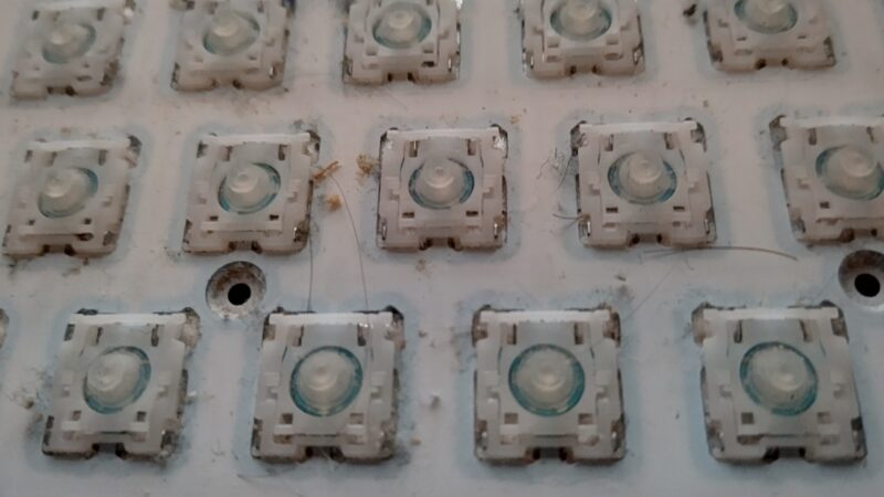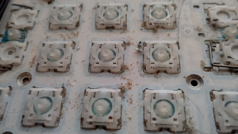 キーキャップもコツコツ外した甲斐がありましたよ。ついでに言うならラバードームも外して接点復活なりなんなり、吹いた方がよかったと思うのですが流石にやる気が起きなかったですね・・・(わざわざ瞬接使って、付け直さなきゃいけないのが・・・ね)。